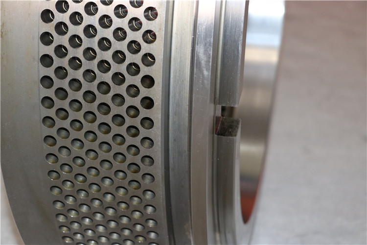 環(huán)模進(jìn)料口孔壁光潔度高,減少物料進(jìn)入??椎淖枇?,有利于物料通過(guò)提高制粒產(chǎn)量:環(huán)模進(jìn)料口孔角度均勻一致,確保環(huán)模出料整齊度好。